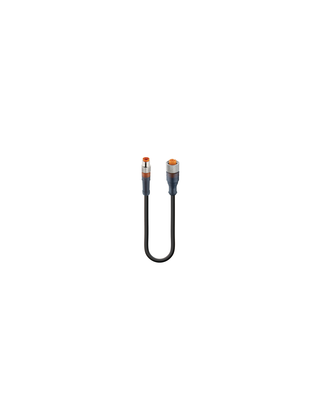 Cordset, double ended, for sensors and actuators, M8 male connector with self-locking threaded joint, straight, 3-poles, M12 female connector with self-locking threaded joint, straight, 3-poles, PUR jacket, halogen free, black, 2 meters.