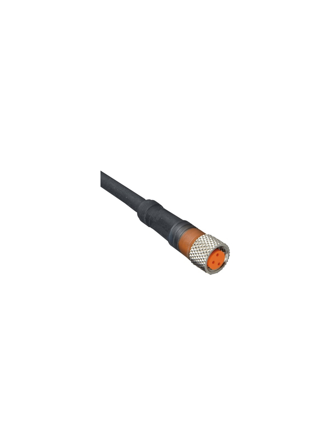 Type: RKMV 3-224/2 M Description: Cordsets, single-ended, for actuator/sensors and distribution boxes, M8 female connector, straight, with self-locking threaded joint and molded cable, 3 poles, PUR jacket, halogen free, black, 2 meters.