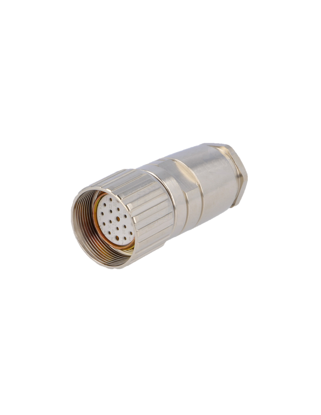 Type: RKC 190/13,5 Description: Field Attachable Connector, M23 female connector with threaded joint, assembling with solder connections, Screw joint for cable PG 13,5: 19-poles. Number of contacts 19