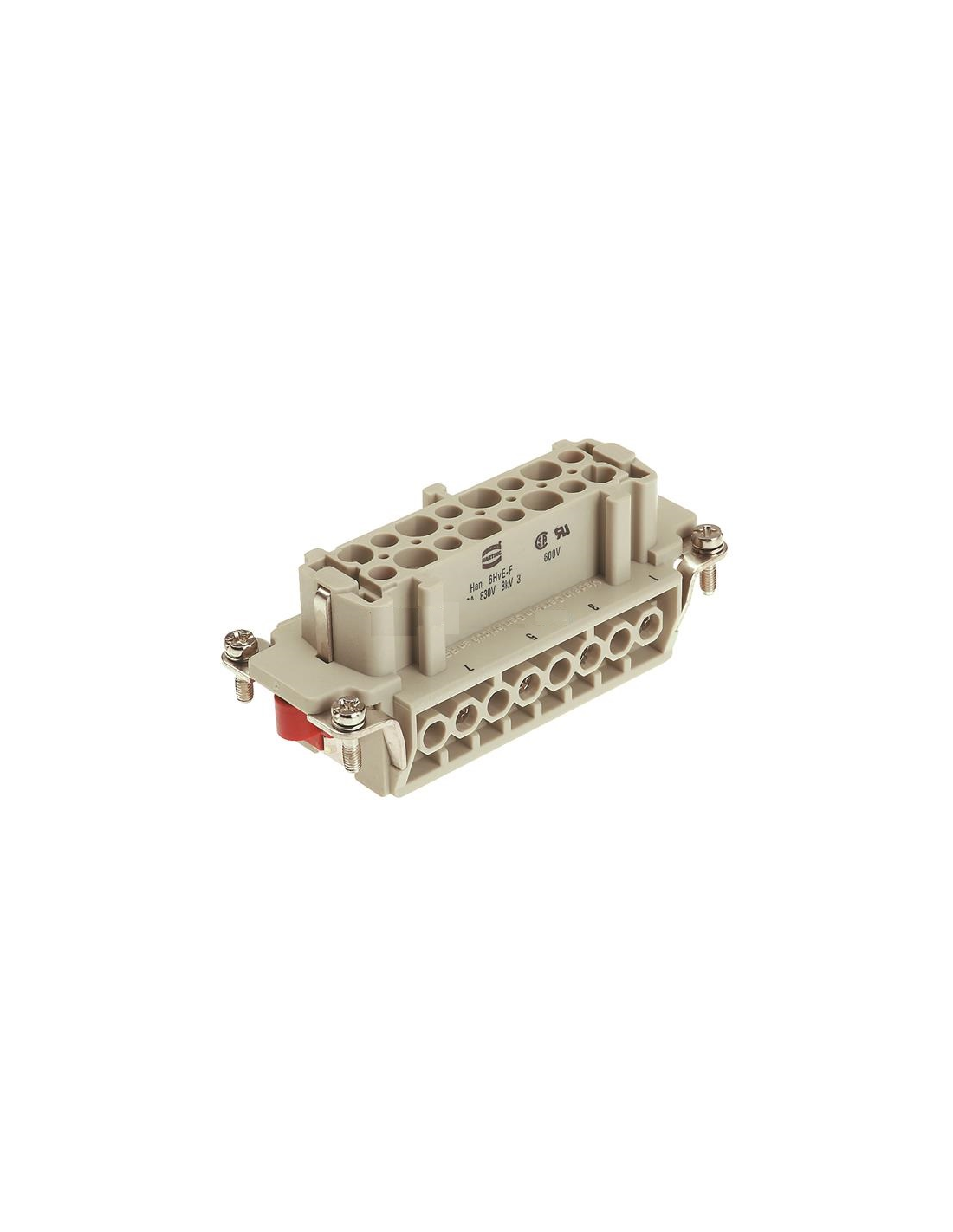 Description: Han HvE 6 Pos. F Insert Screw Gender: female Mechanical working life - mating cycles: >= 500 RoHS conformity: Yes Size: 16 B Series: Han Hv E® Limiting temperature, min.: -40 °C Limiting temperature, max.: 125 °C Termination method: S